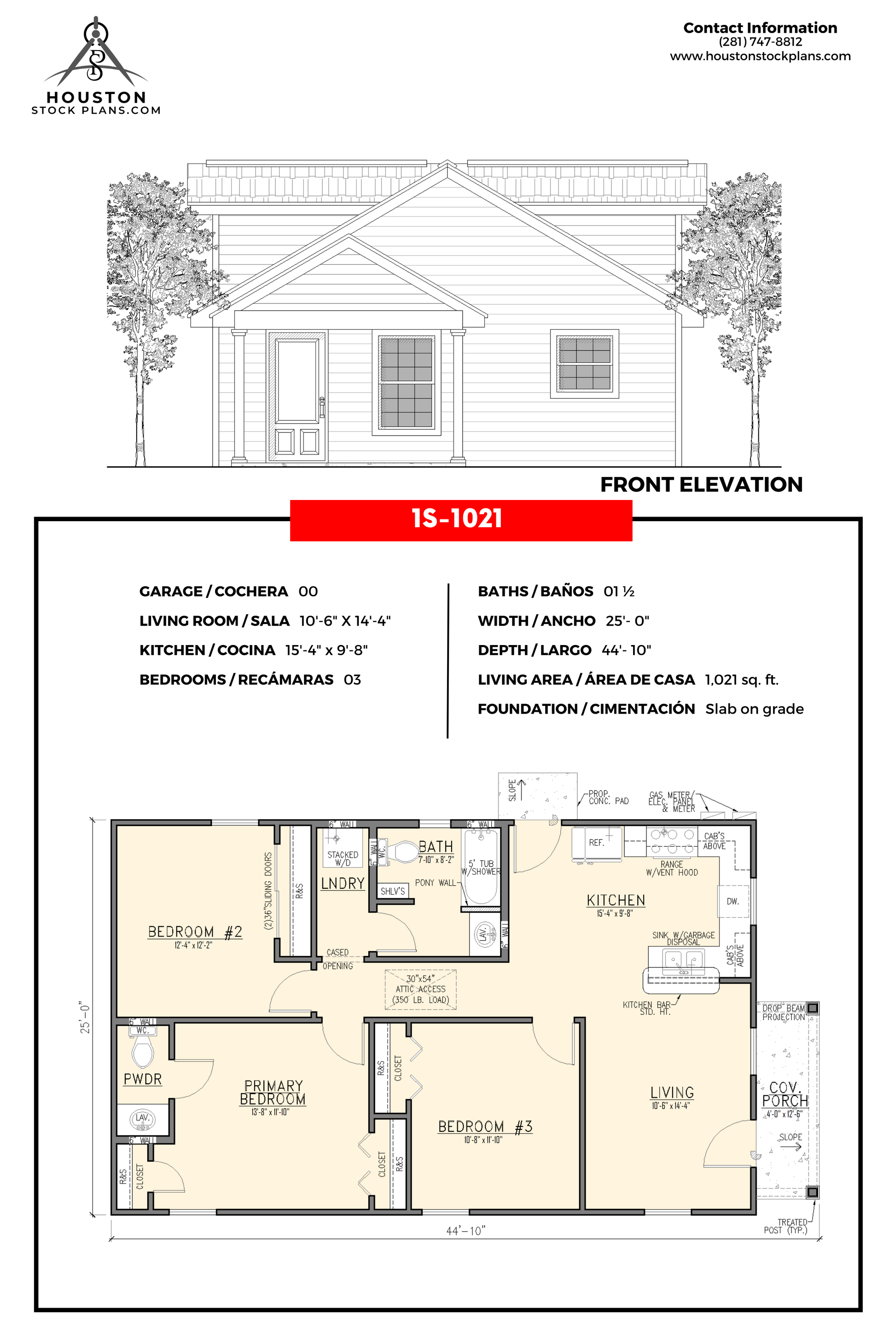 NA 10'—6" x 14'—4" 15'—4" x 9'—8" 03 1.5 25'—0" 44'—10" 1,021 Sq. pie Losa en grado |