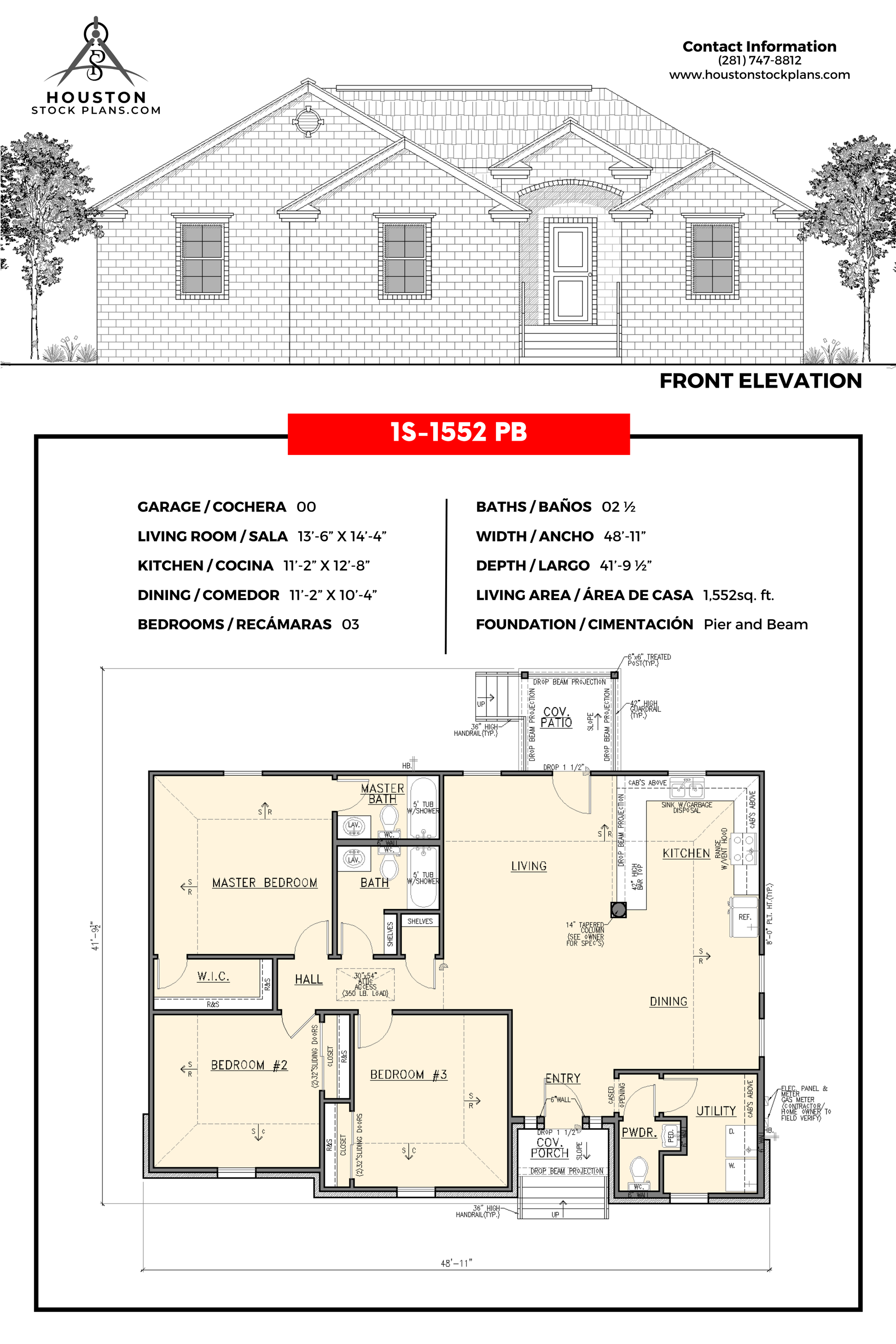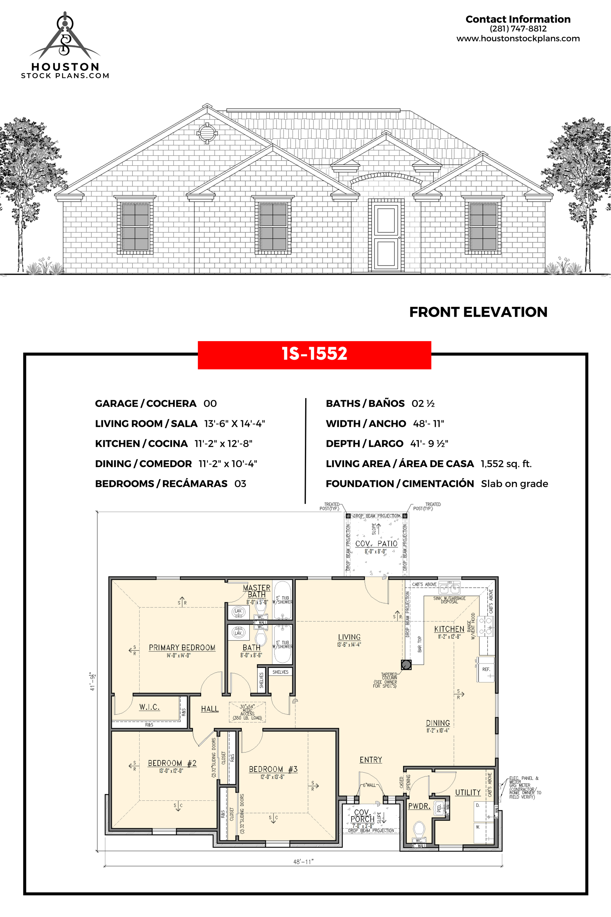 NA 13'—6" x 14'—4" 11'—2" x 12'—8" 03 2.5 48'—11" 41'—9 1/2" 1,552 Sq. pie Losa en grado |