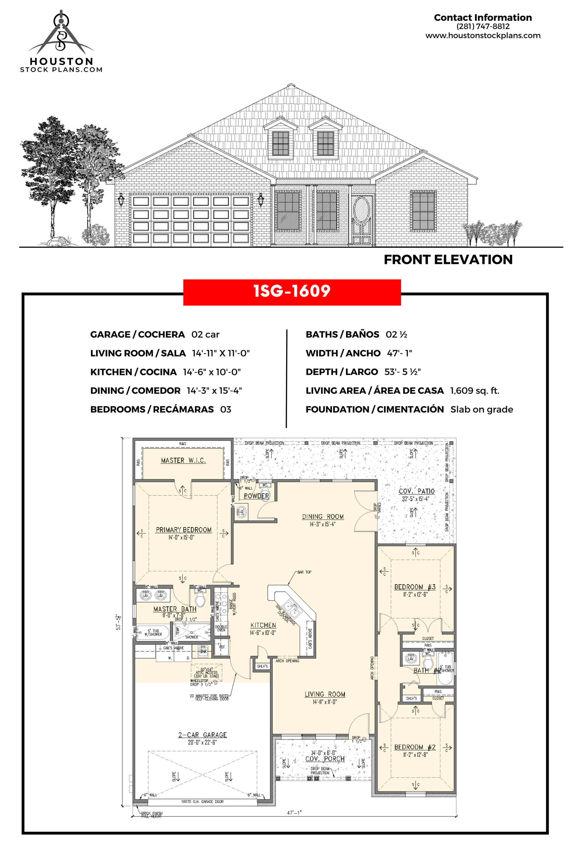 2 coche 14'—11" x 11'—0" 14'—6" x 10'—0" 03 2.5 47'—1" 53'—5 1/2" 1,609 Sq. pie Losa sobre rasante