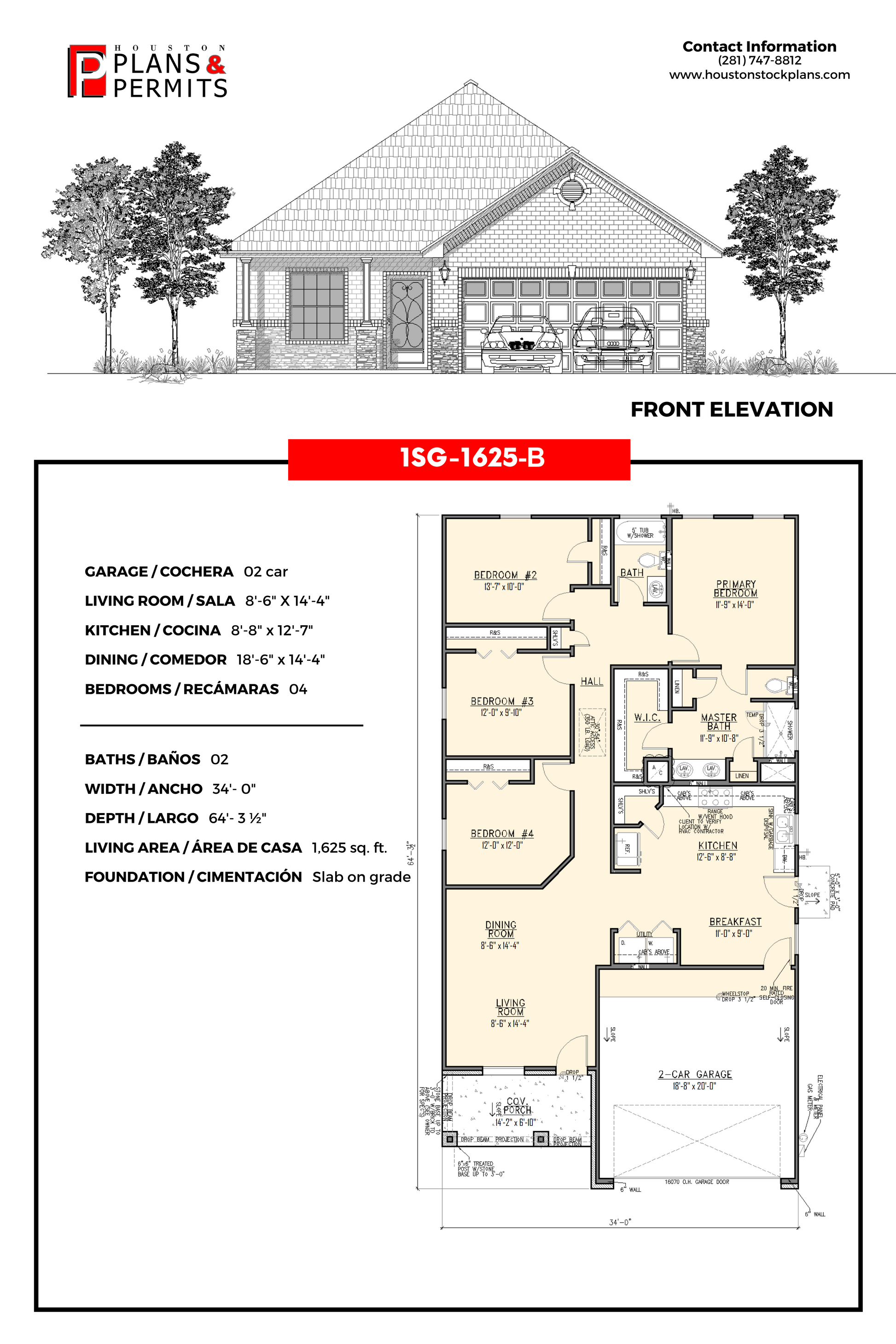 2 Car 9'—8" x 14'—2" 8'—4" x 17'—3" 7'—4" x 12'—3" 04 02 34'—0" 64'— 3-1/2" 1,625 sq. ft Slab on grade |