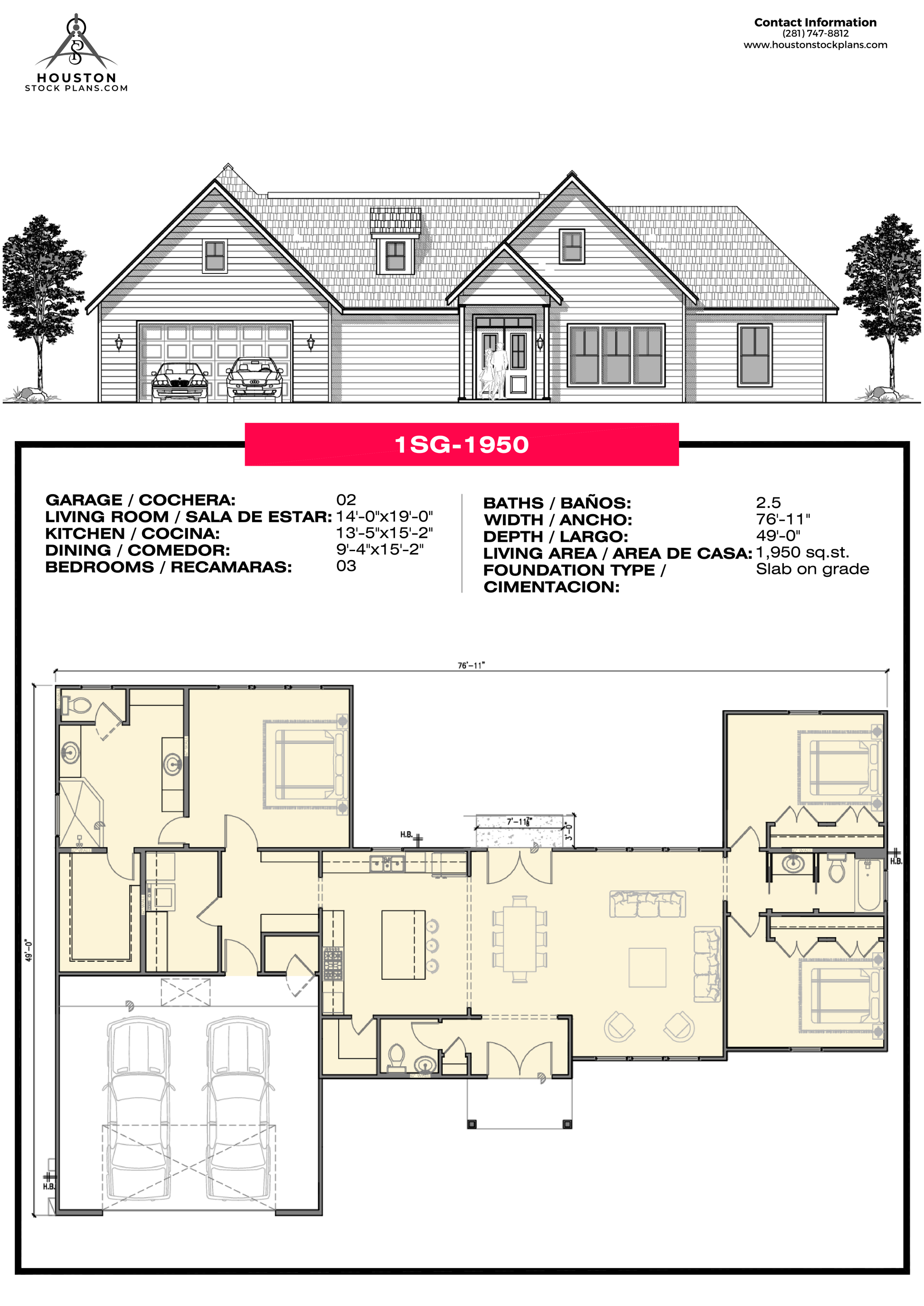 2 Coche 14'—4 1/2" x 12'—6" 13'—9 1/2" x 11'—10" 03 02 41'—1" 59'— 6 1/2" 1,962 Sq. pie Losa en grado |