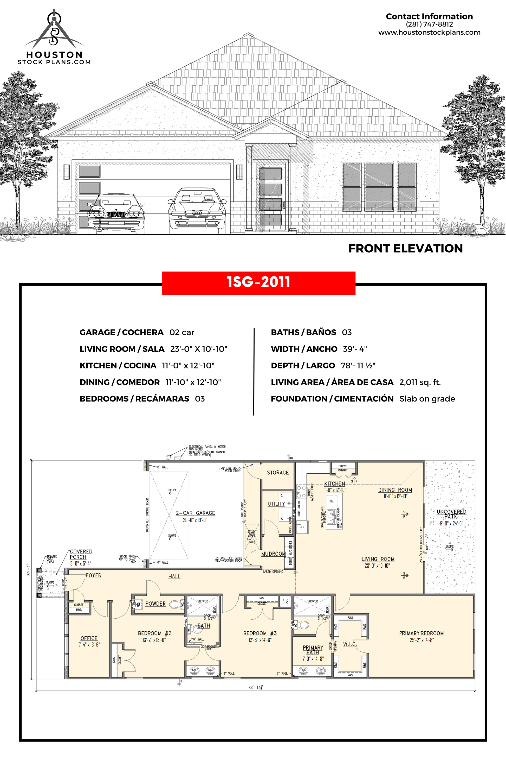 2 Coche 23'—0" x 10'—10" 11'—0" x 12'—10" 03 03 39'—4" 78'— 11 1/2" 2,011 Sq. pie Losa en grado |