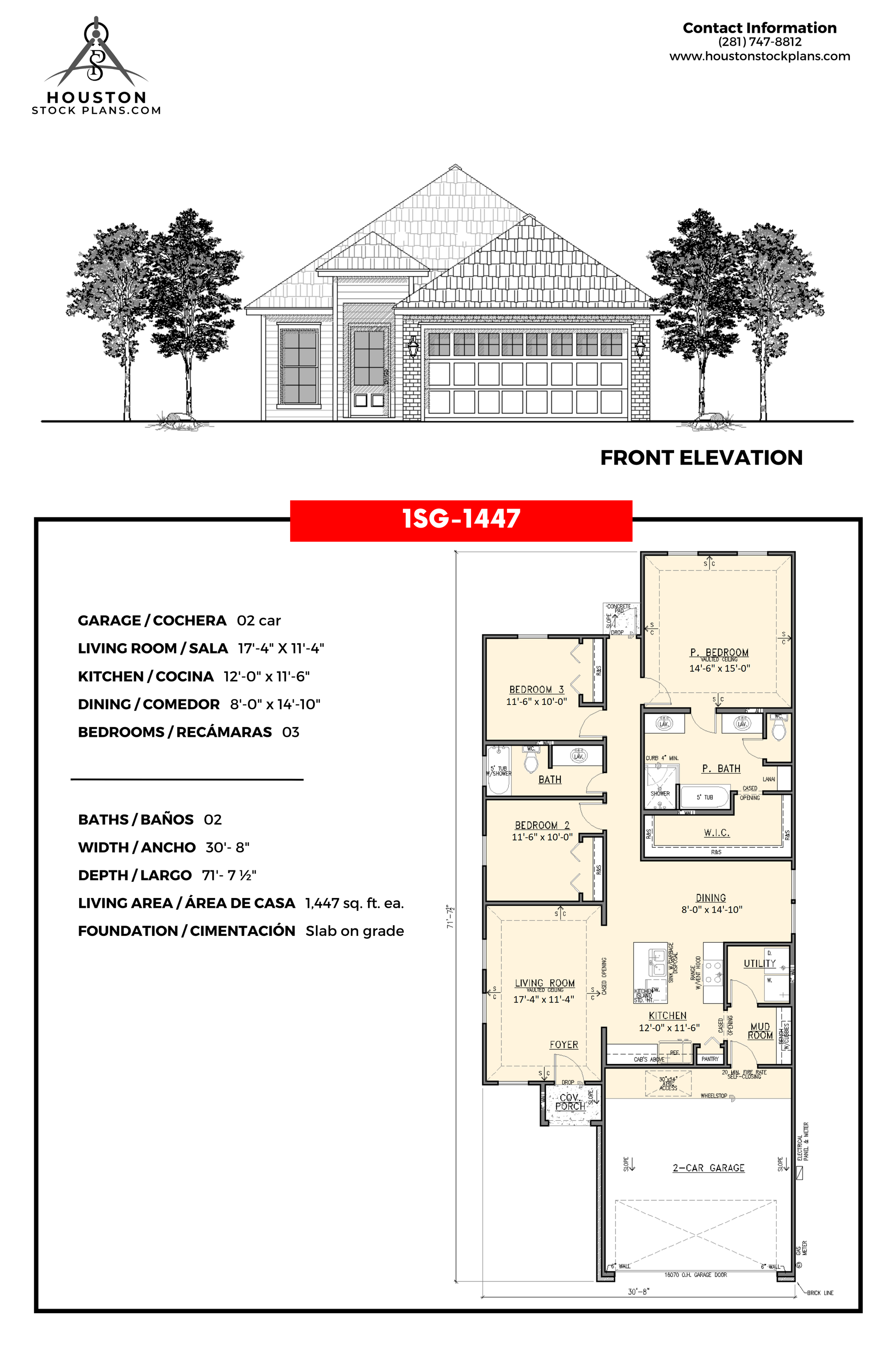 2 coche 17'—4" x 11'—4" 12'—0" x 11'—6" 03 02 30'—8" 71'—7 1/2" 1,447 Sq. pie Losa en grado |