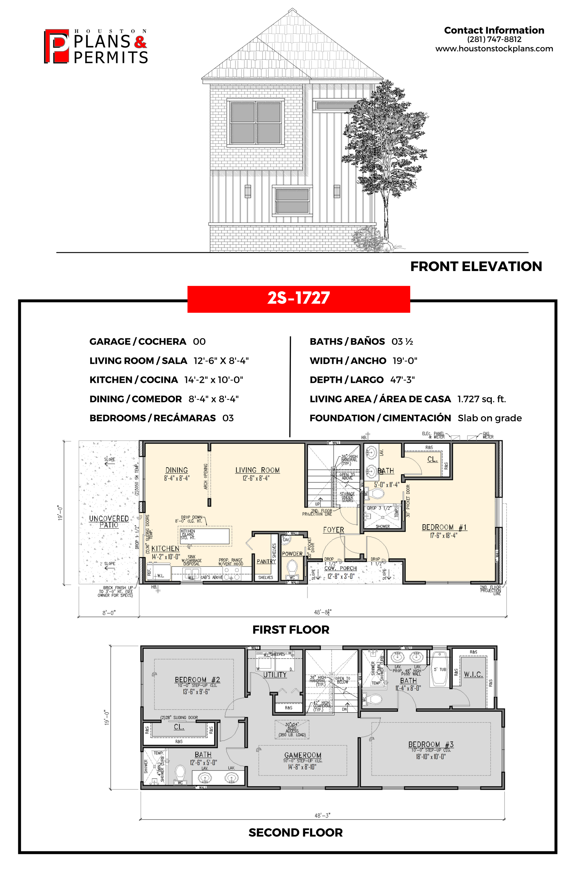 00 12'—6 x 8'—4" 14'—2" x 10'—0" 03 3.5 19'—0" 48'—8-1/2" 1,727 sq. ft Slab & grade |