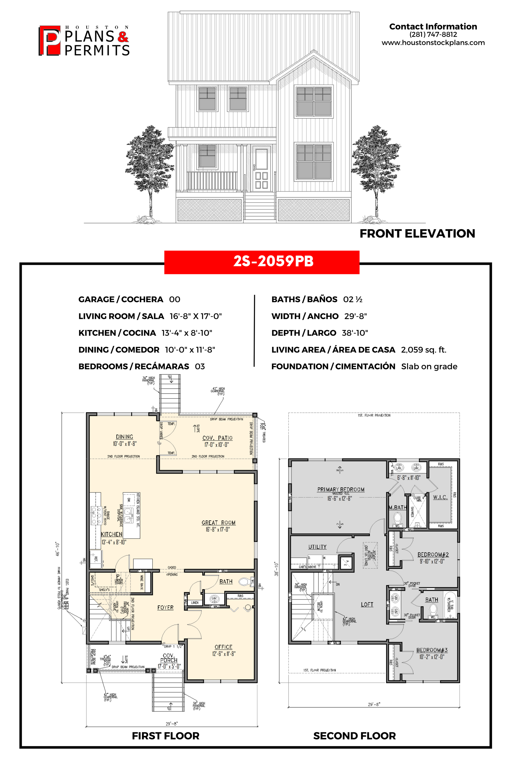 00 16'—8' x 17'—0" 13'—4" x 8'—10" 03 2.5 29'—8" 38'—10" 2,059 sq. ft Pier & Beam |