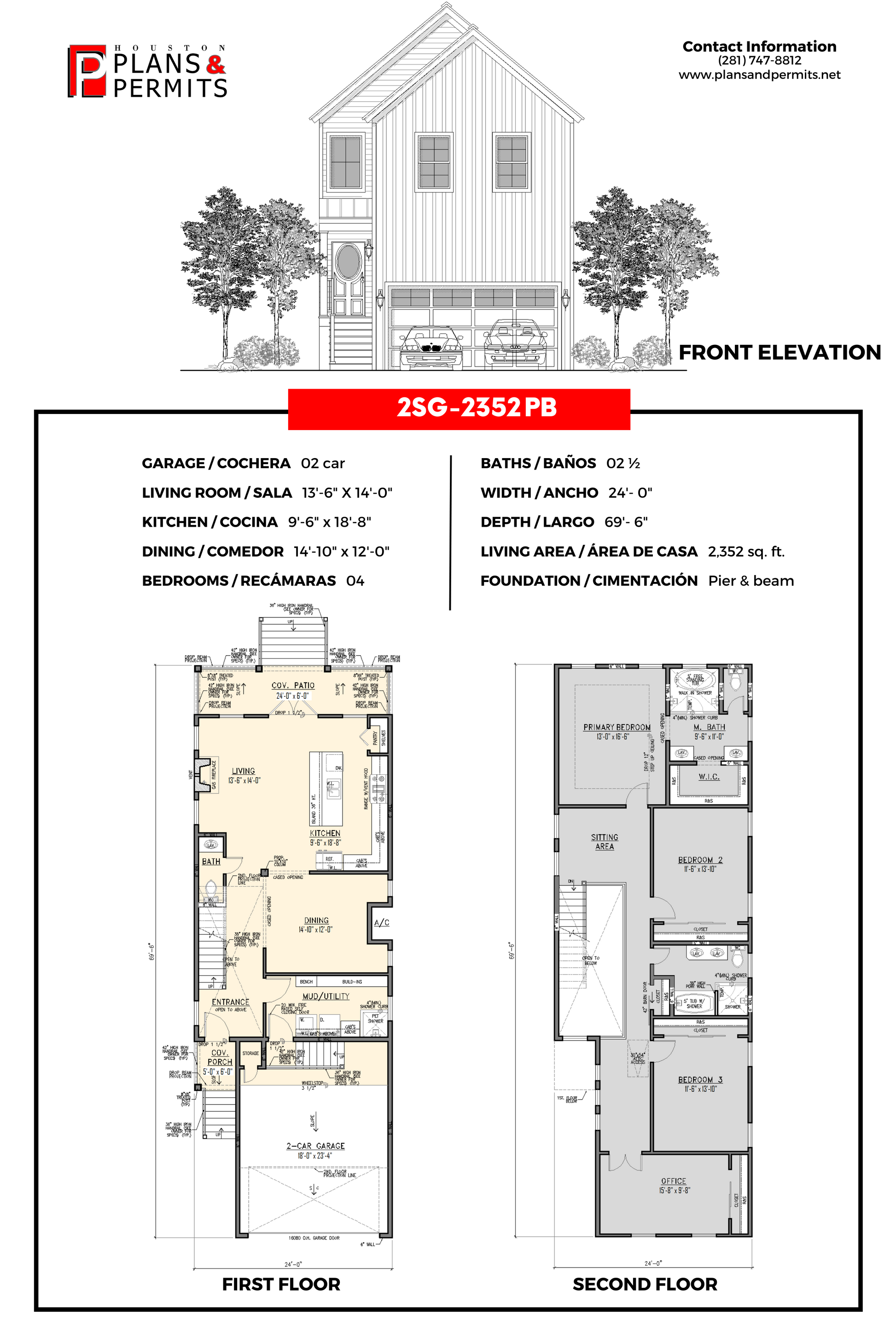 02 13'—6" x 14'—0" 9'—6" x 18'—8" 04 2.5 24'—0" 69'—6" 2,352 sq. ft Pier & Beam |